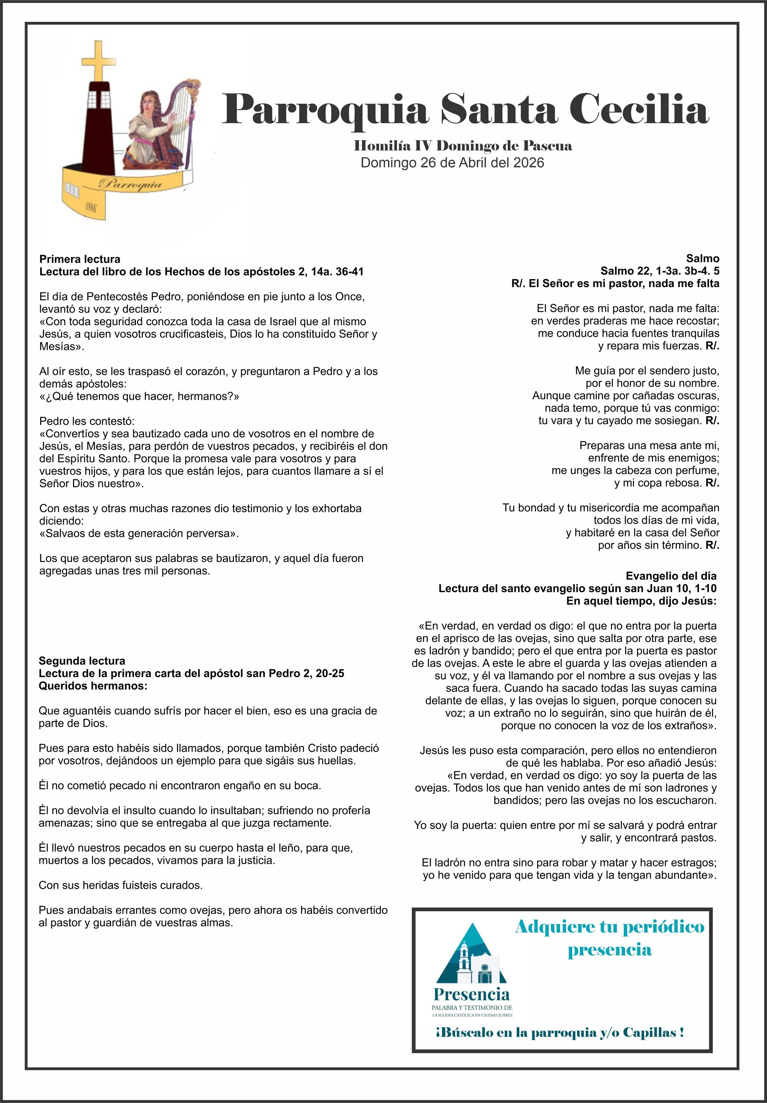 Lectura del Domingo (26 de Abril del 2026) Santa Cecilia JuarezAugust 27, 2020 Facebook0 Twitter LinkedIn0 Reddit Tumblr Pinterest0 0 Likes