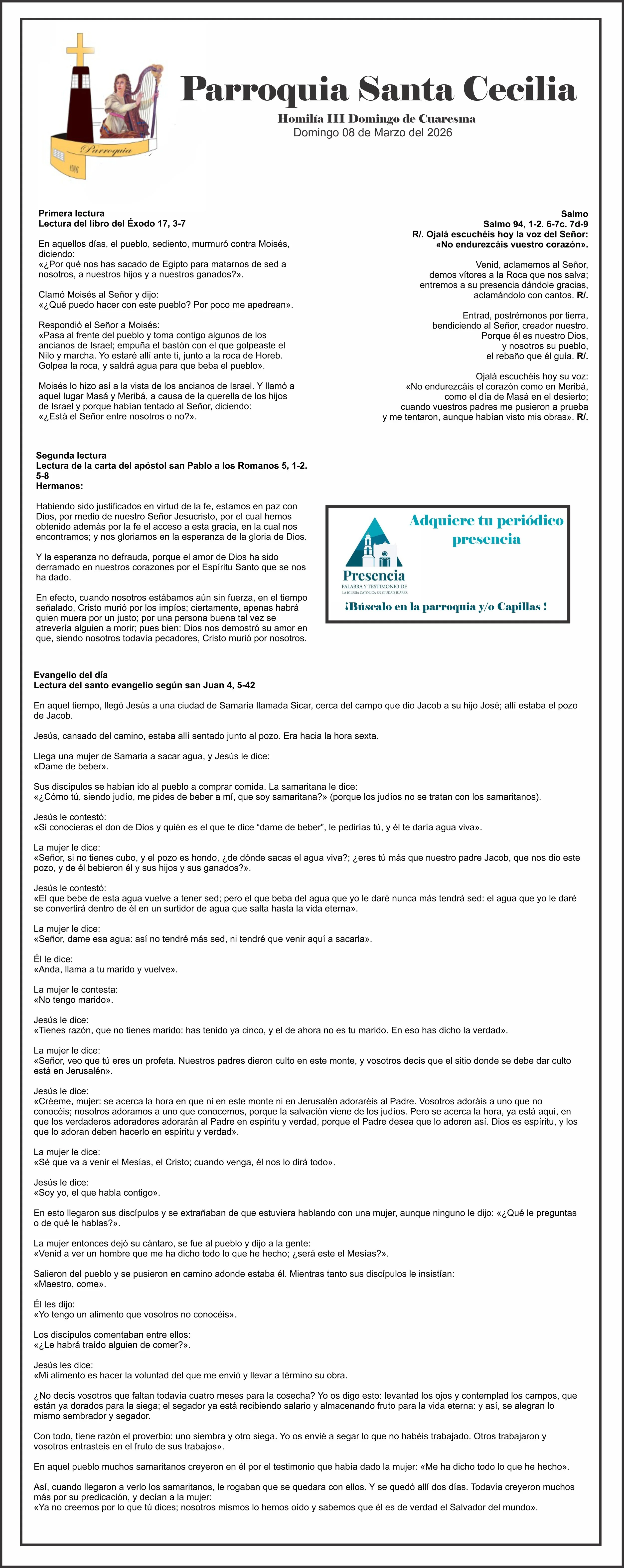 Lectura del Domingo (08 de Marzo del 2026) Santa Cecilia JuarezAugust 27, 2020 Facebook0 Twitter LinkedIn0 Reddit Tumblr Pinterest0 0 Likes